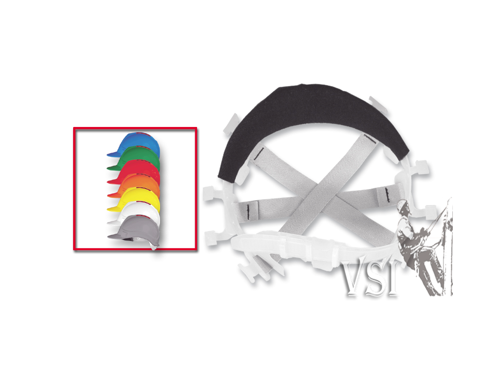Refs. 11888205 / 06 / 07 / 08 / 09. Seis puntos de apoyo.Sudadera que no irrita la piel. Suspensión en cinta de nylon que disminuye la fuerza transmitida en caso de impacto y banda anti-sudor.