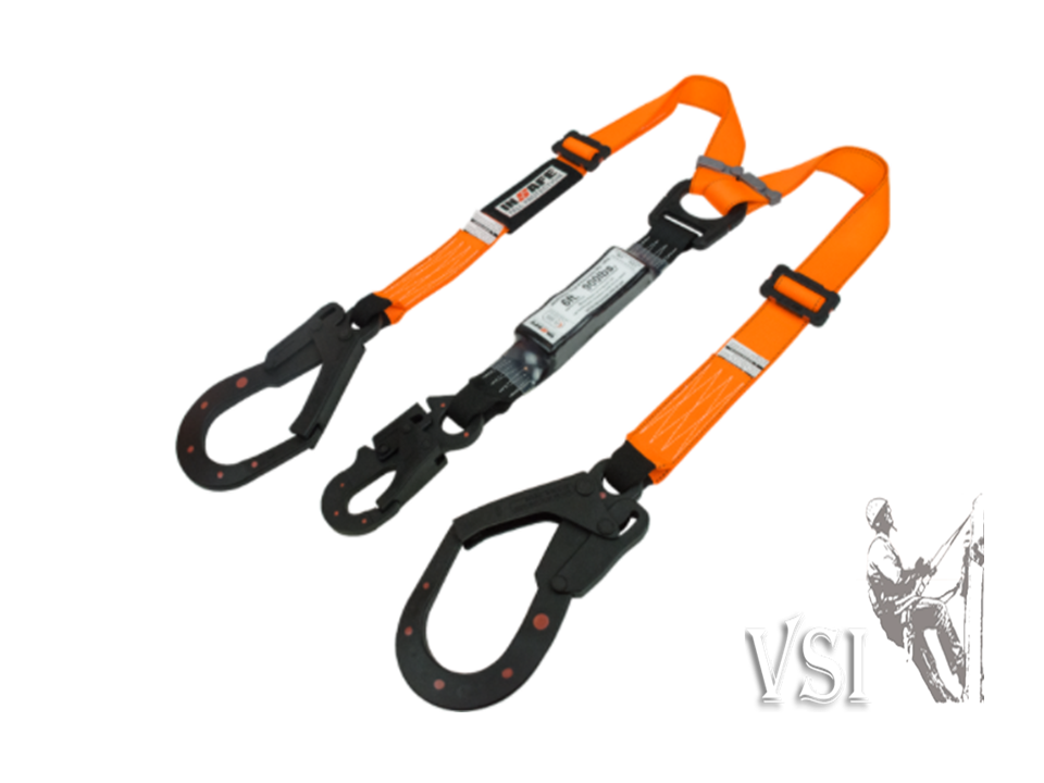 INSAFE IN 8021RD ESLINGA EN Y CON ABSORBEDOR REGULABLE Y GANCHOS MIXTOS DIELÉCTRICOS. Elemento parte de un sistema personal de detención de caídas, eslinga en reata polyester con doble terminal (tipo Y) con absorbedor de energía, ganchos Dieléctricos de seguridad 2 1⁄4 y 3⁄4 con resistencia de 5000 lbf. Sistema graduable a través de las hebillas de graduación dieléctrica para aumentar o reducir la longitud, Paquete absorbedor de energía tiene una elongación máxima de 1.2m (48 pulgadas), en caso de una caída reduce la fuerza de impacto a 900 lbf (4kN) o menos. NORMAS ANSI Z359.1, ANSI Z359.12, CSA Z259.12, ANSI/ASSE Z359.13–2013.